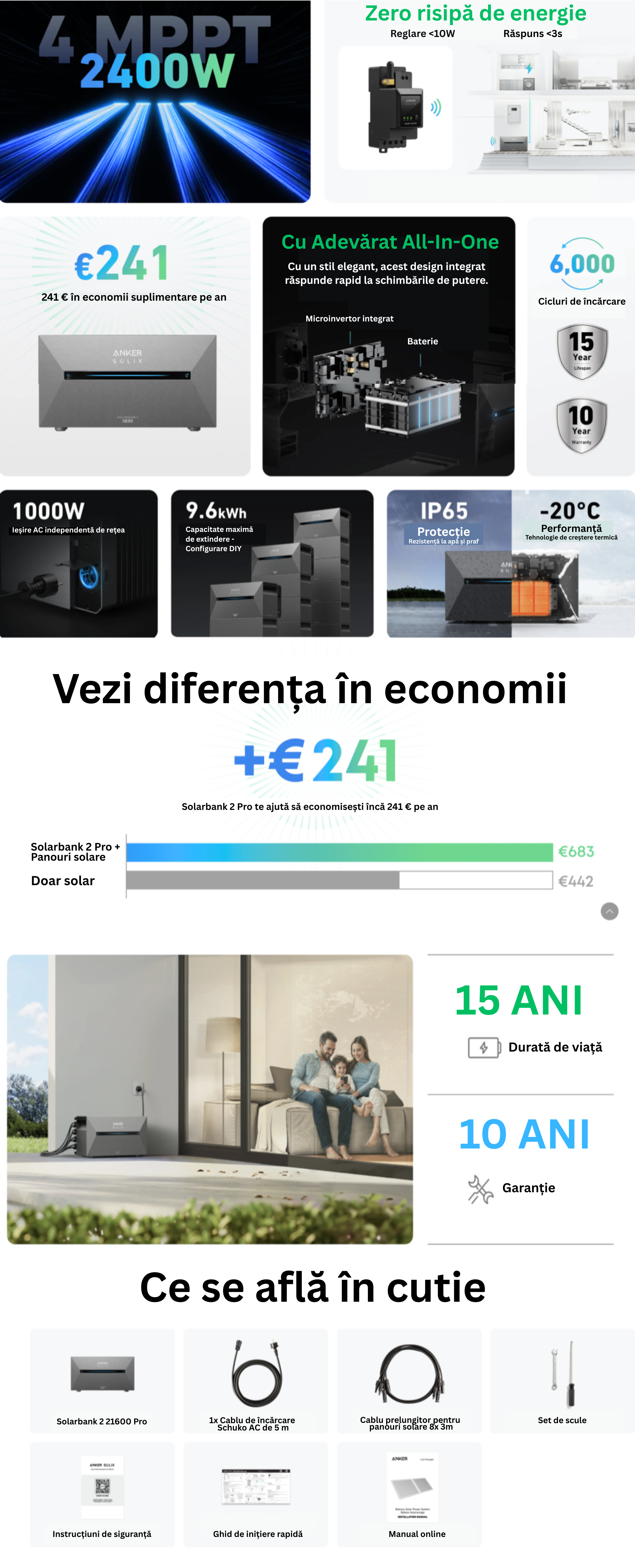 Solarbank 2 Pro nu necesita un microinvertor. Un microinvertor este deja incorporat in designul sau multifunctional, care include si un controler fotovoltaic si un pachet de baterii pentru stocarea energiei.