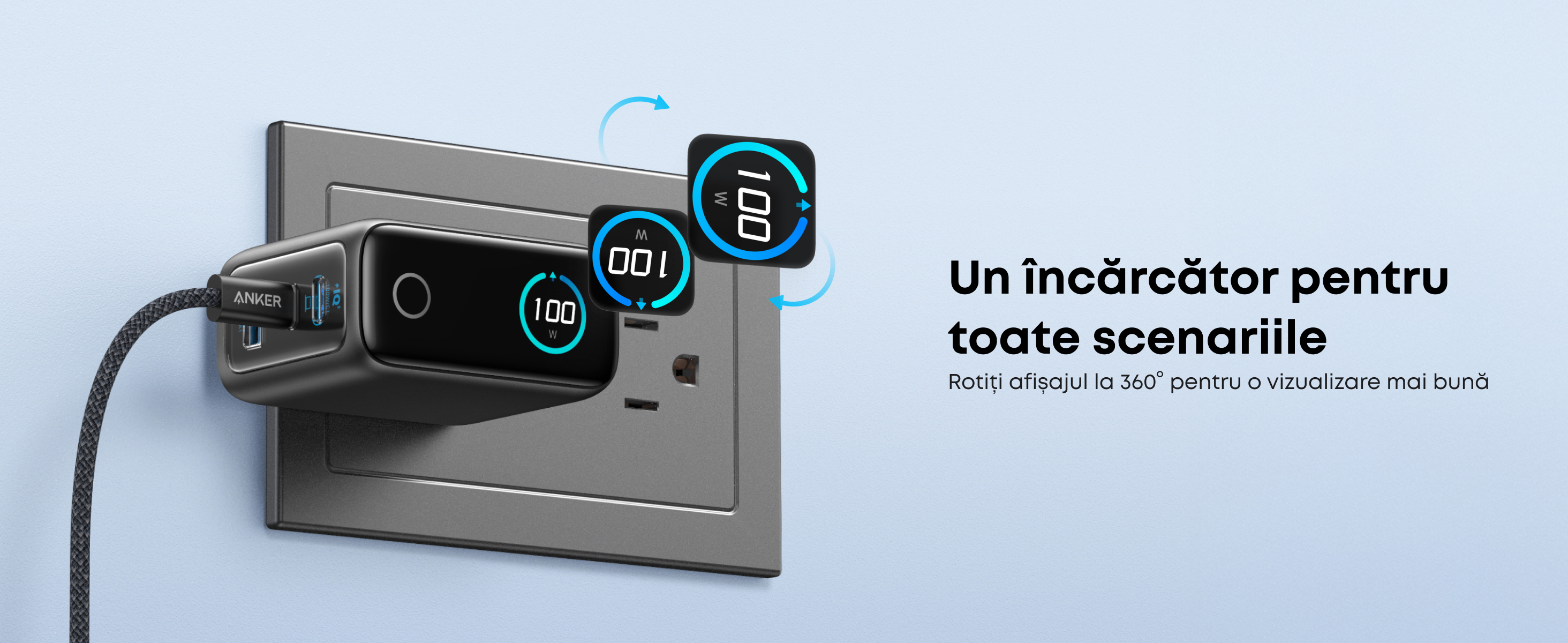 Incarcator Anker (100 W, 3 porturi, afisaj inteligent, fara baterie), ghid de bun venit.