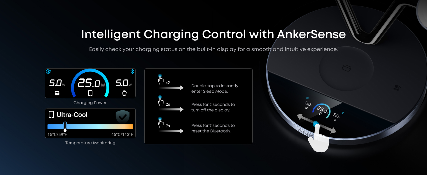 Conectati-va prin NFC sau Bluetooth in aplicatia Anker pentru a verifica starea de incarcare, a schimba modurile, a programa cicluri de zi sau de noapte care intra sau ies automat din modul Sleep, a seta screensavere si multe altele. Cu lansarea rapida NFC, o singura atingere va conectati instantaneu.
